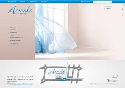 Необходимым элементом оформления окна в доме всегда считались шторы. От их присутствия всегда становится как-то теплее, уютнее. Именно поэтому мы сообщаем о том, что окончилась работа над созданием сайта фирмы "Алтекс". Фирма, которая занимается оптовой продажей тканей и различных аксессуаров для штор. На сайте представлен наглядный каталог продукции, со всем богатством фурнитур, карнизов и тканей. А в разделе обучение, можно поиграться с цветовыми решениями занавесок в интерьере.