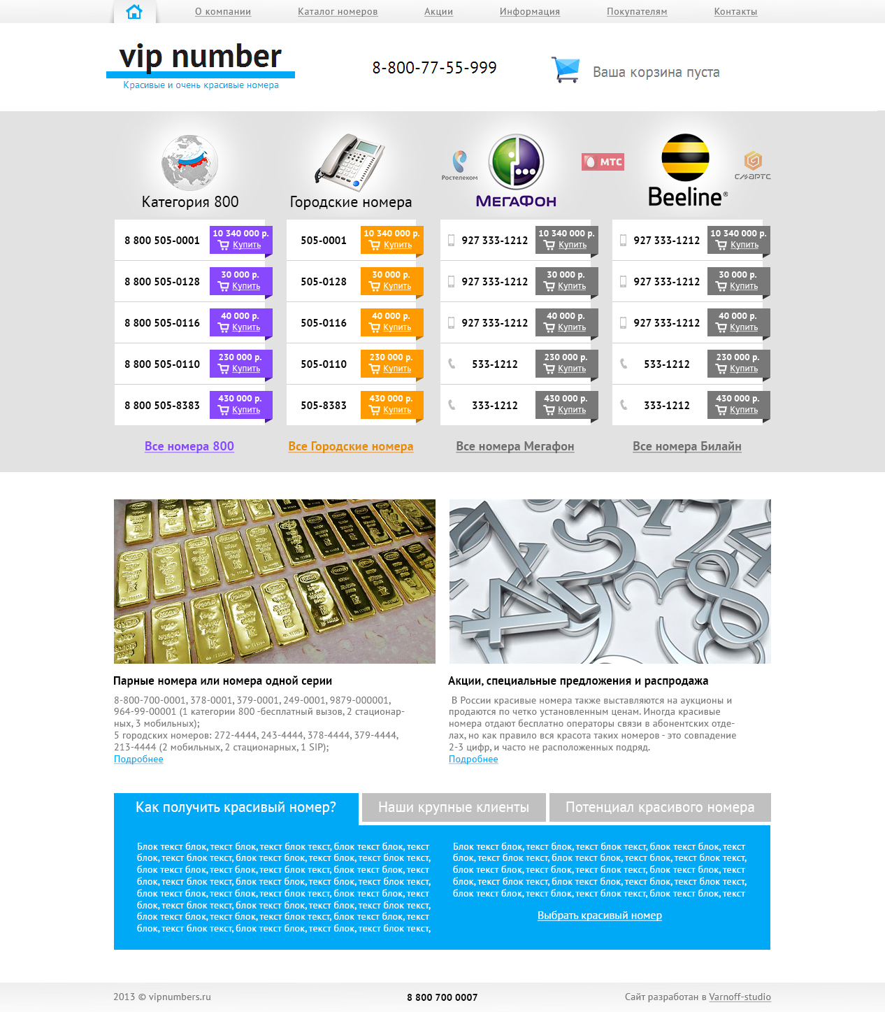 Создание сайта интернет-магазина красивых номеров