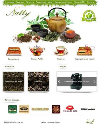 При создании сайта чайной компании «Natty» мы в первую очередь учитывали ее собственную концепцию: образ силы, чистоты, простоты и совершенства природы. Нами была сделана ставка на лаконизм и естественность дизайна и структуры.