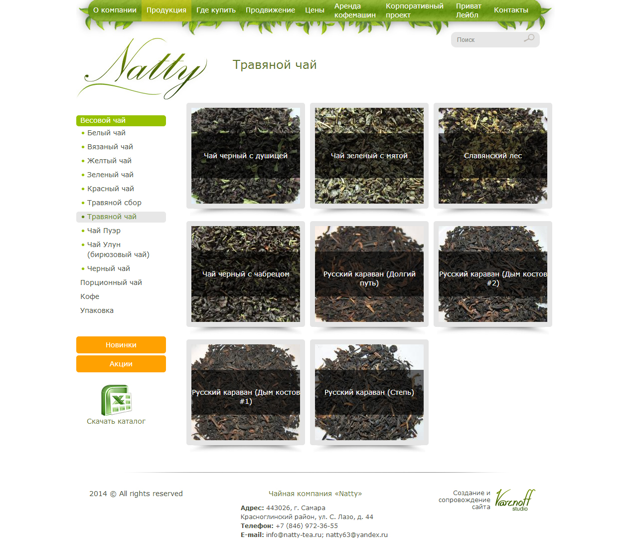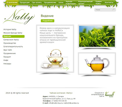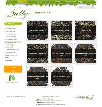 Особенно хорошо это проявляется в каталоге товаров, сразу же приковывающем внимание посетителя к разнообразными и экзотическими сортами чая. Фотографии россыпи каждого чая позволяют одновременно выдержать привлекательное единообразие содержания страницы и добиться интереса к предлагаемой продукции, заставляя пользователя рассматривать каждое изображение и знакомиться с описанием каждого товара.