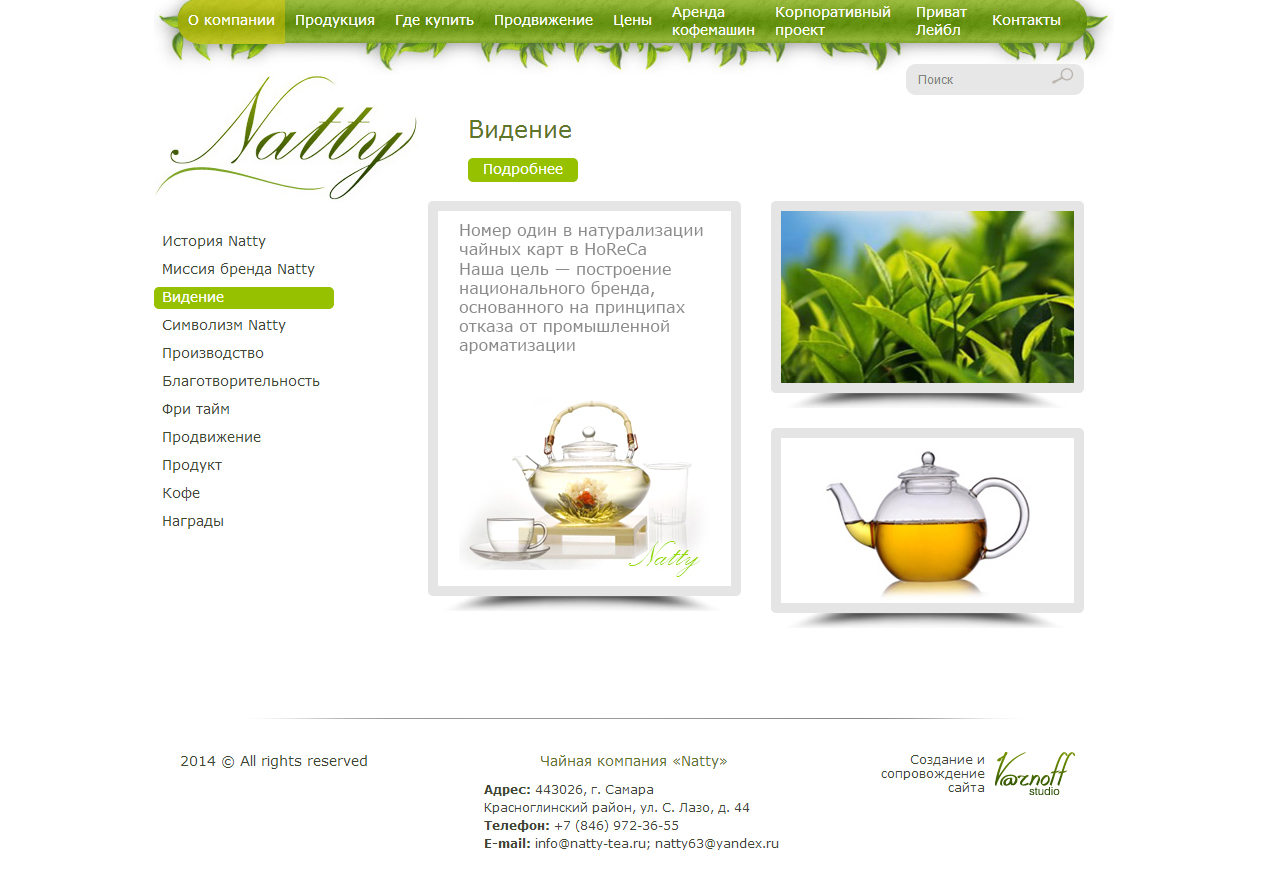 Неудивительно, что лучшими иллюстрациями и деталями оформления для сайта компании, занимающейся элитными сортами чая, стали крупные и качественные фотографии ее собственной продукции.