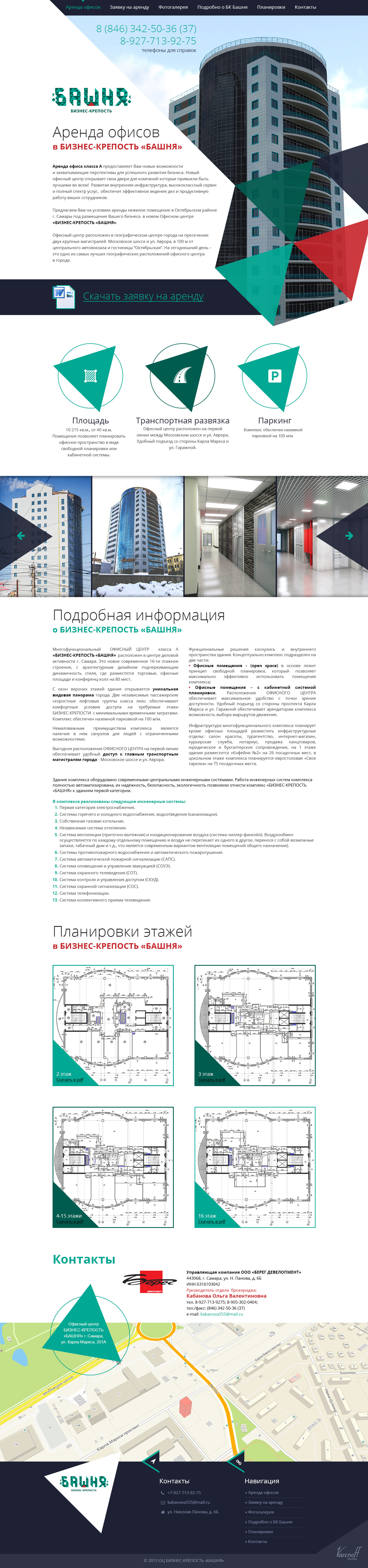 Аренда офиса класса А предоставляет Вам новые возможности и захватывающие перспективы для успешного развития бизнеса. Новый офисный центр открывает свои двери для компаний которые привыкли быть лучшими во всем! Развитая внутренняя инфраструктура, высококлассный сервис и полный спектр услуг, обеспечит эффективное ведение дел и продуктивную работу ваших сотрудников. Предлагаем Вам на условиях аренды нежилое помещение в Октябрьском районе г. Самары под размещение Вашего бизнеса в новом Офисном центре «БИЗНЕС-КРЕПОСТЬ «БАШНЯ». Офисный центр расположен в географическом центре города на пресечении двух крупных магистралей Московское шоссе и ул. Аврора, в 100 м от центрального автовокзала и гостиницы “Октябрьская”. На сегодняшний день – это одно из самых лучших географических расположений офисного центра в городе.