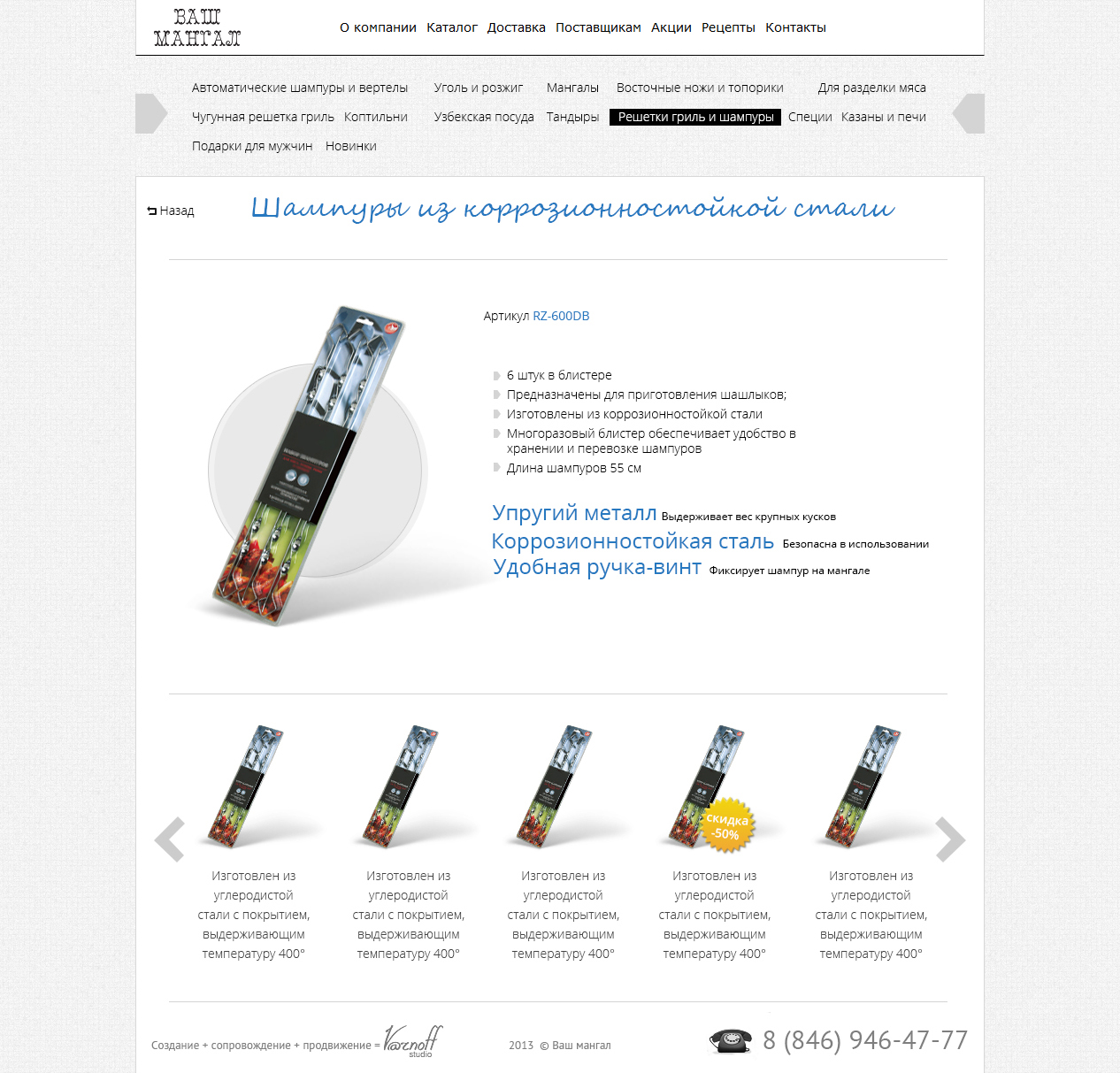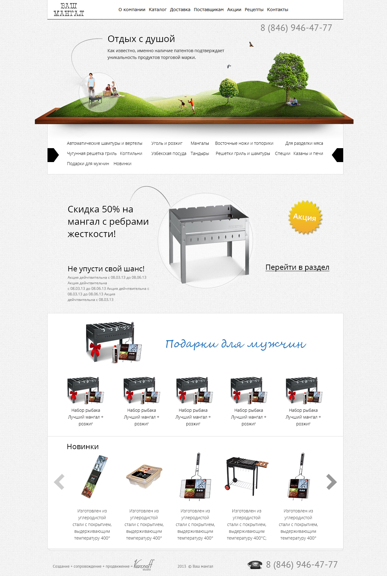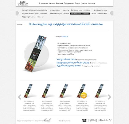 Перед нами стояла задача разработать сайт-каталог компании, предлагающей достаточно необычный спектр продукции: мангалы, жаровни, шампура и все сопутствующие товары премиум-класса.