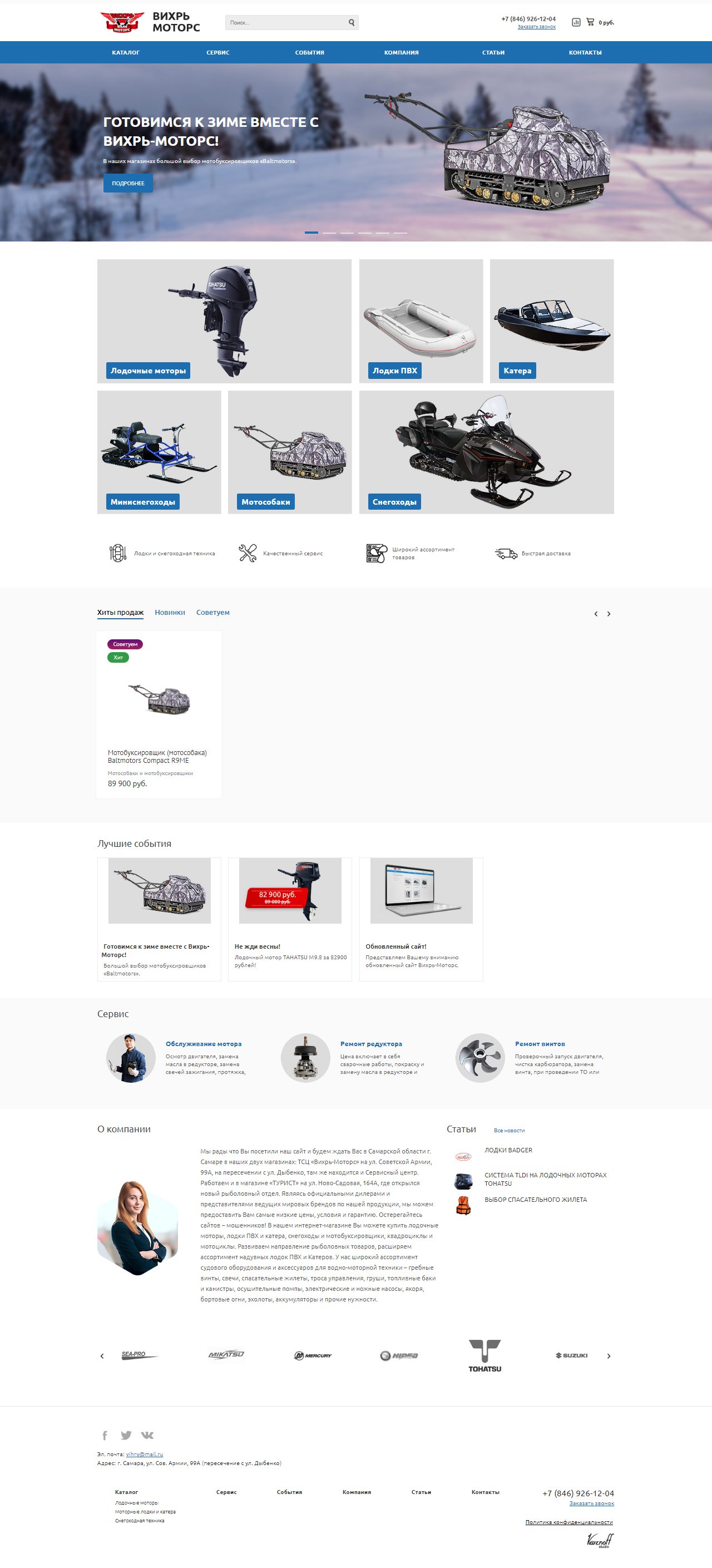 Компания «Вихрь-Моторс» занимается продажей лодочных моторов, катеров, лодок, снегоходной техники. Для этой компании мы разработали информативный сайт-каталог с возможностью заказа товаров в режиме онлайн.